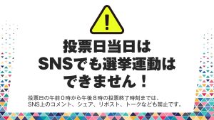 投票日当日の選挙活動は公職選挙法で禁止となっております。 明日、27日(日)午前0時~午後8時の投票…