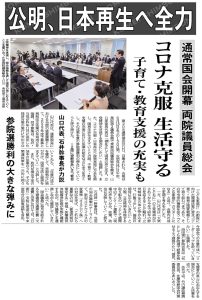 通常国会が始まりました。 午前中の会合では、山口代表を中心に、衆参国会議員が結束して新型コロナ対策や…