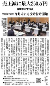 会合では経産省から、1月31日(月)申請受付開始をめざしているとの説明がありました。 (事業復活支援…