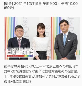 明日のNHK日曜討論の第2部は自殺、孤立がテーマです。ライフリンクの清水康之代表、LightRing…
